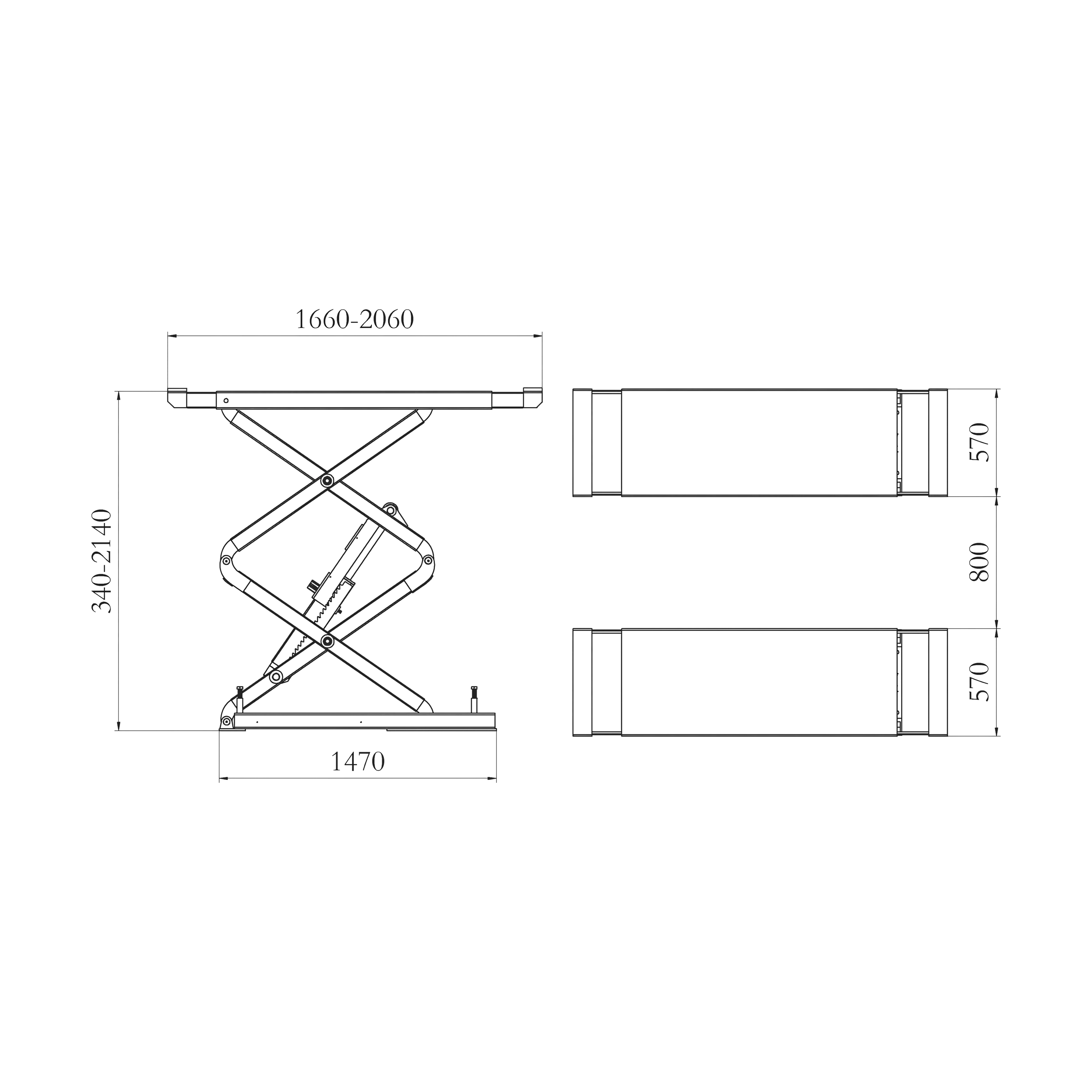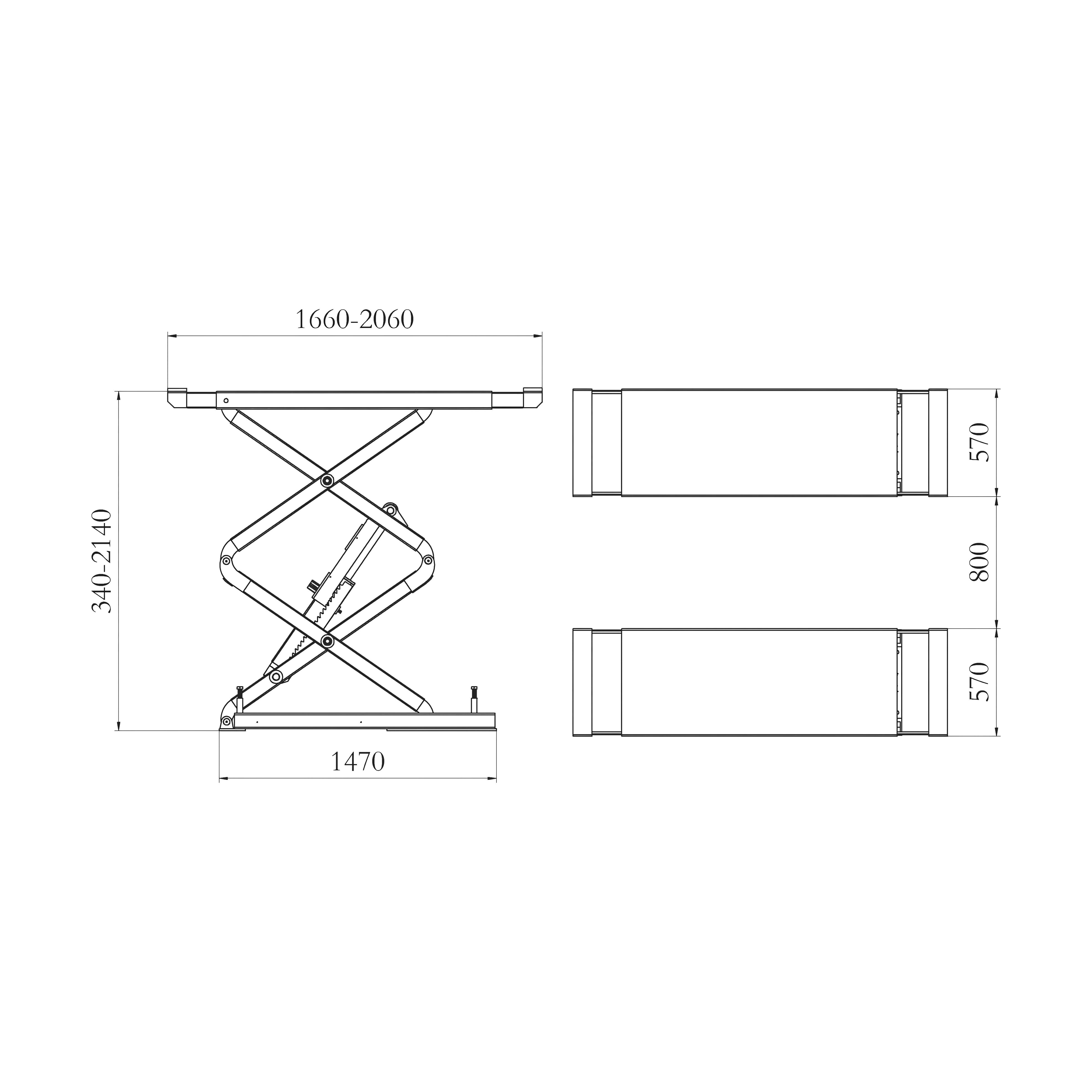 Die minimale Plattformhöhe von nur 340 mm ermöglicht einen platzsparenden Einbau in den Boden, ideal für Werkstätten mit begrenztem Platzangebot.