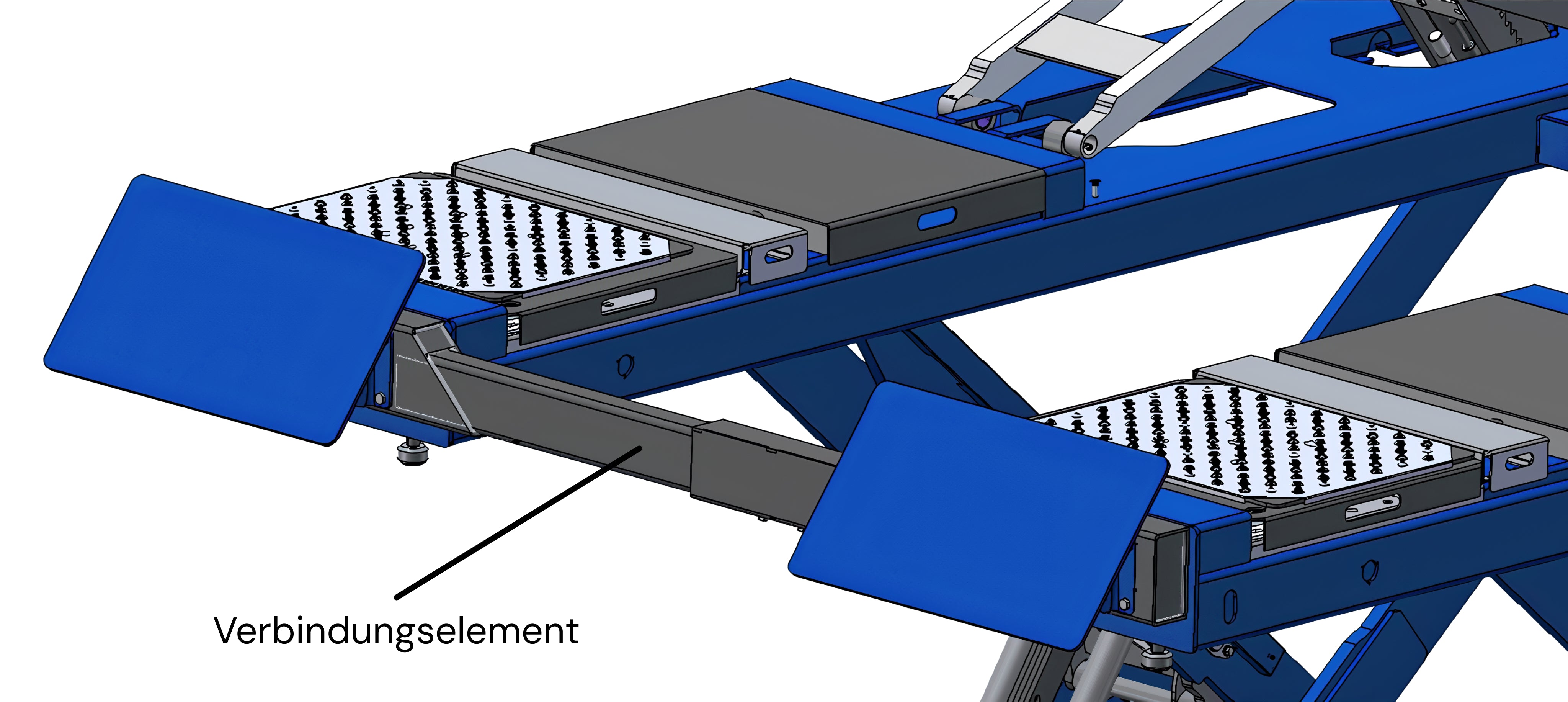 Dieser Plattformverbinder ist ein praktisches Zubehörteil zur sicheren und stabilen Überbrückung des offenen Bereichs zwischen den beiden Hauptfahrbahnen (Plattformen) verschiedener Scherenbühnenmodelle. Er dient als Mittelabdeckung und schafft eine durchgehende, nutzbare Fläche.
