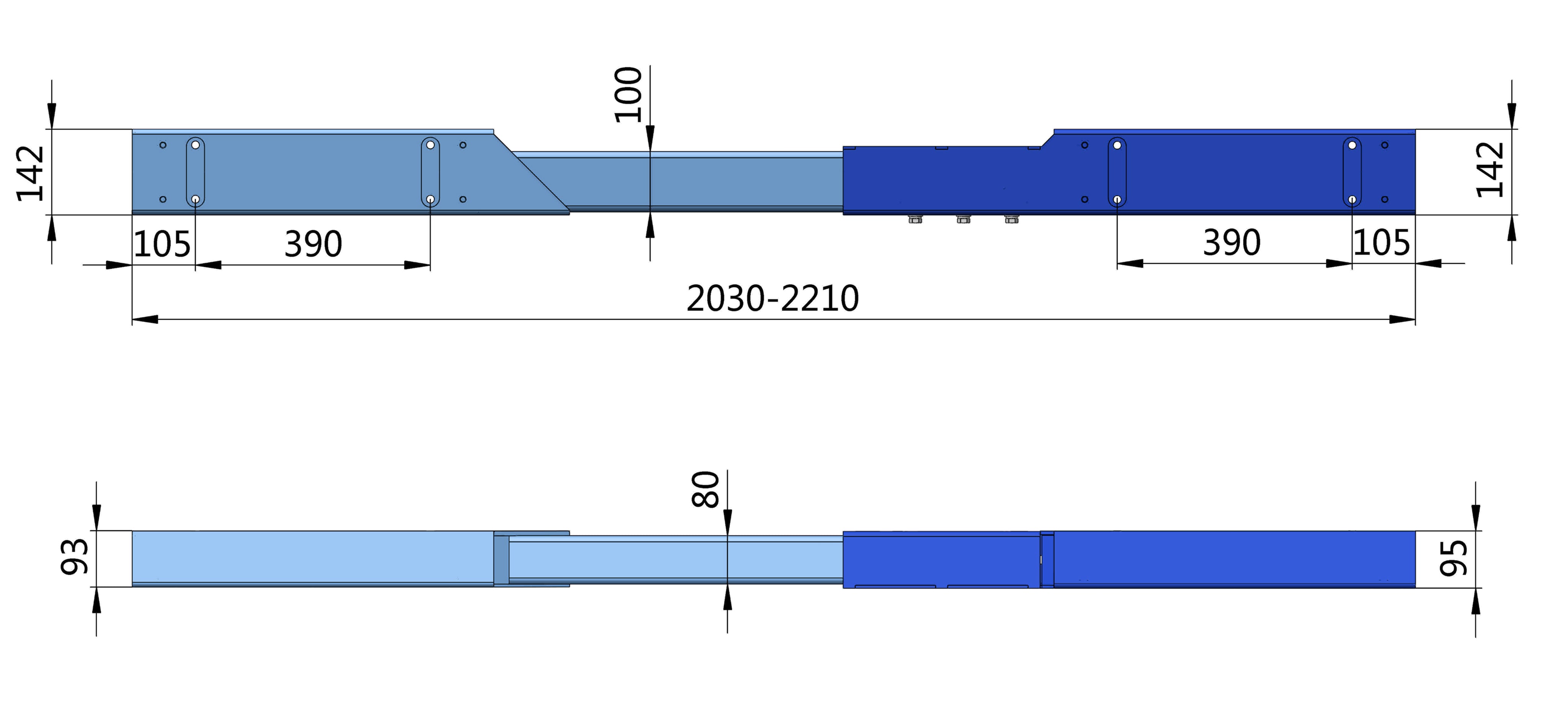- Maximale Hubhöhe von 2160 mm: Die Hauptplattform bietet ausreichend Höhe für Arbeiten an großen Fahrzeugen. Die Unterplattform ist erweiterbar und somit auch für längere Fahrzeuge geeignet.
