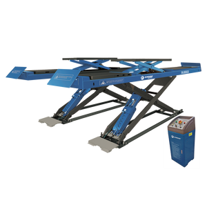 Scherenhebebühne mit maximaler Hubhöhe und geringem Platzbedarf, ideal für präzise Achsvermessungen und Wartungsarbeiten an groß...