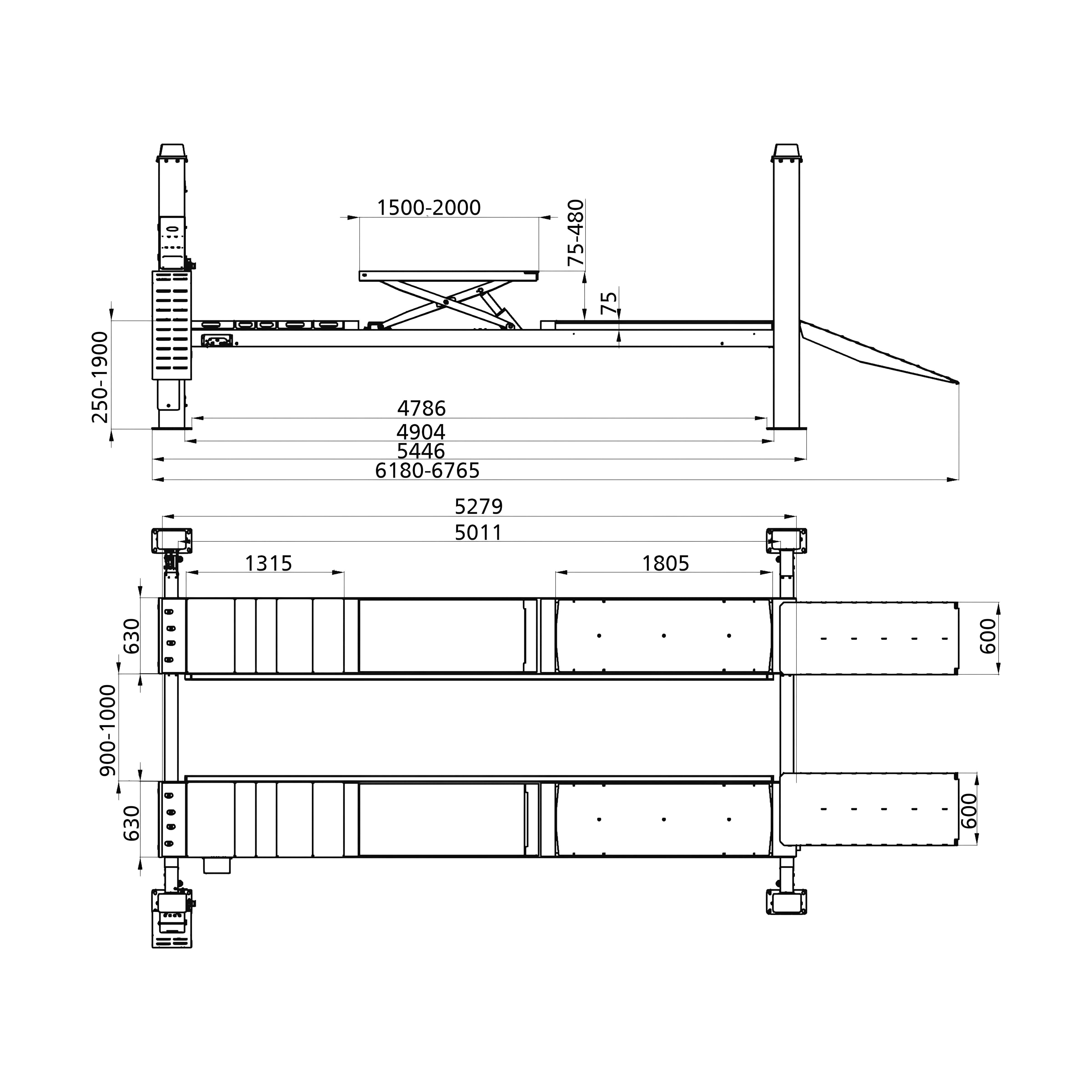 - Maximale Hubhöhe: Mit einer Hubhöhe von bis zu 1900 mm ermöglicht die Hebebühne komfortables Arbeiten an verschiedenen Fahrzeugtypen.