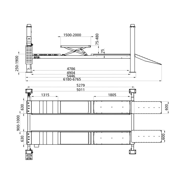 - Hubkapazität: Die GB-FP-5.0Z bietet eine Tragkraft von 5 Tonnen, ideal für SUVs, Transporter und leichte Nutzfahrzeuge.