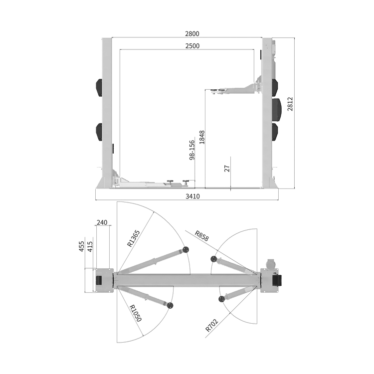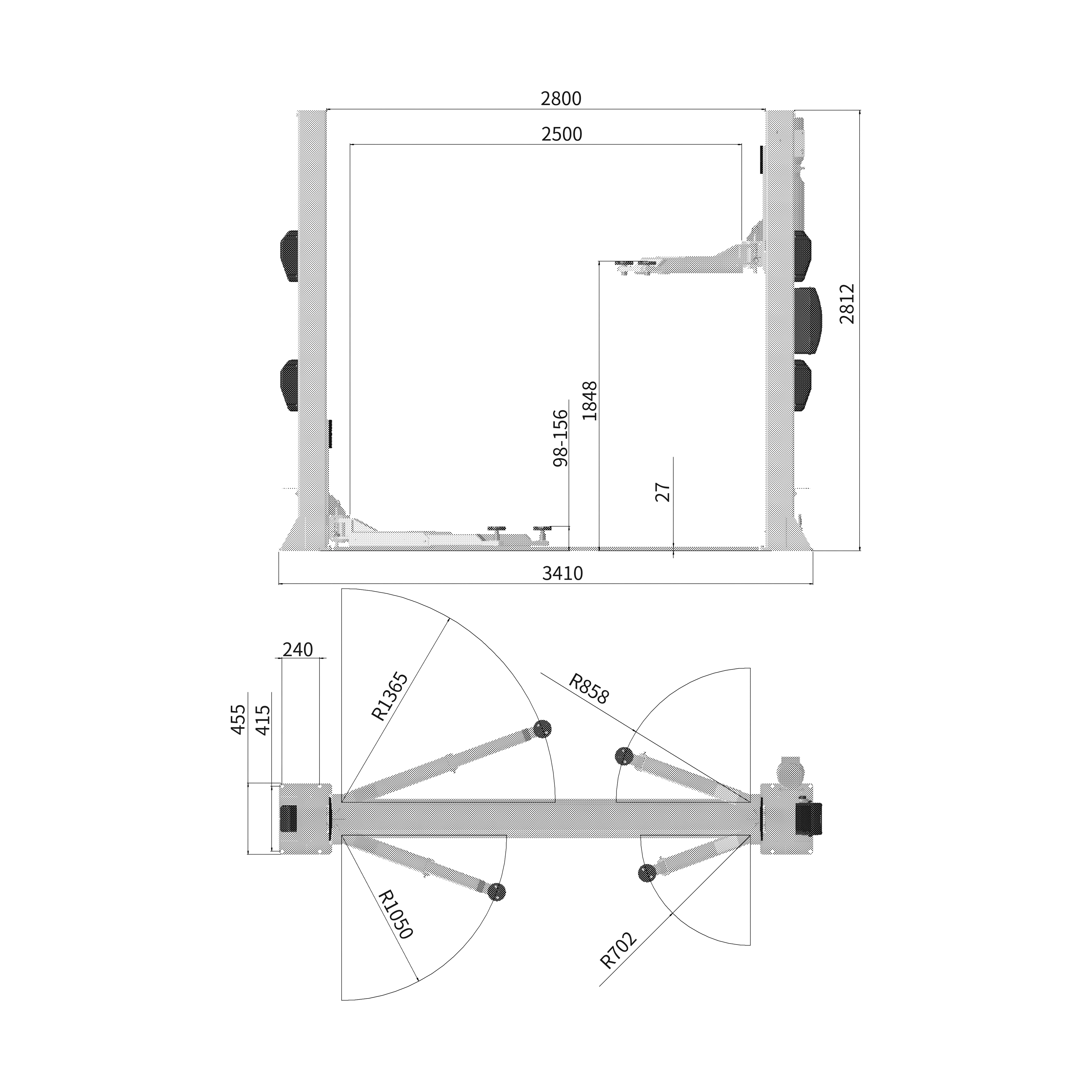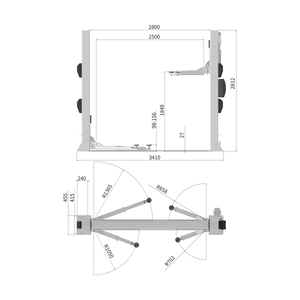 - Hubhöhe bis 1800 mm, freie Durchfahrtshöhe von 2500 mm, geeignet für verschiedenste Fahrzeugtypen.
