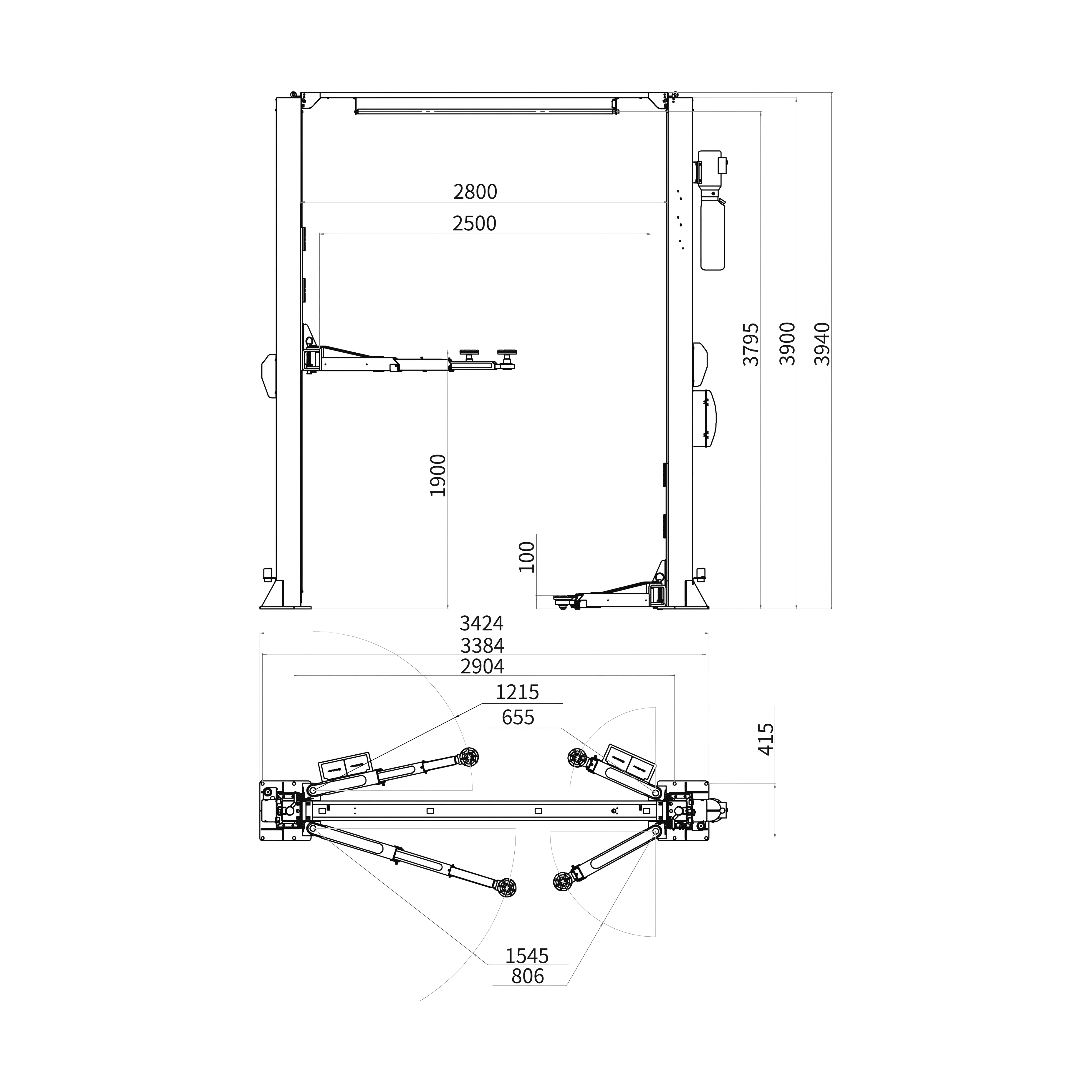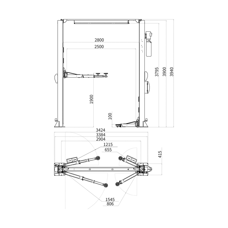 - Mit einer Hubhöhe von bis zu 1900 mm und einer Durchfahrtsbreite von 2500 mm ist die Hebebühne vielseitig einsetzbar.